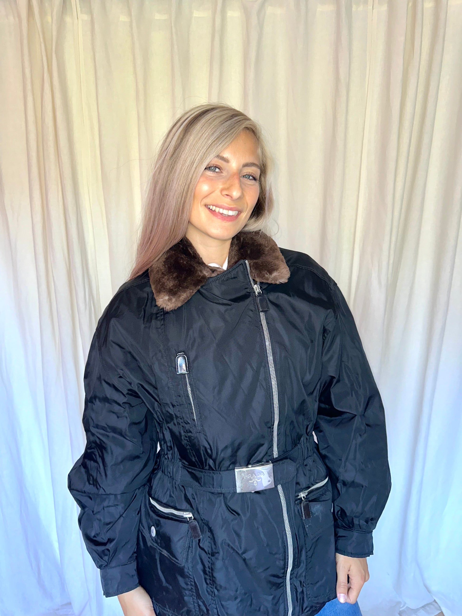 Jas Prada halflang zwart - Maat XL