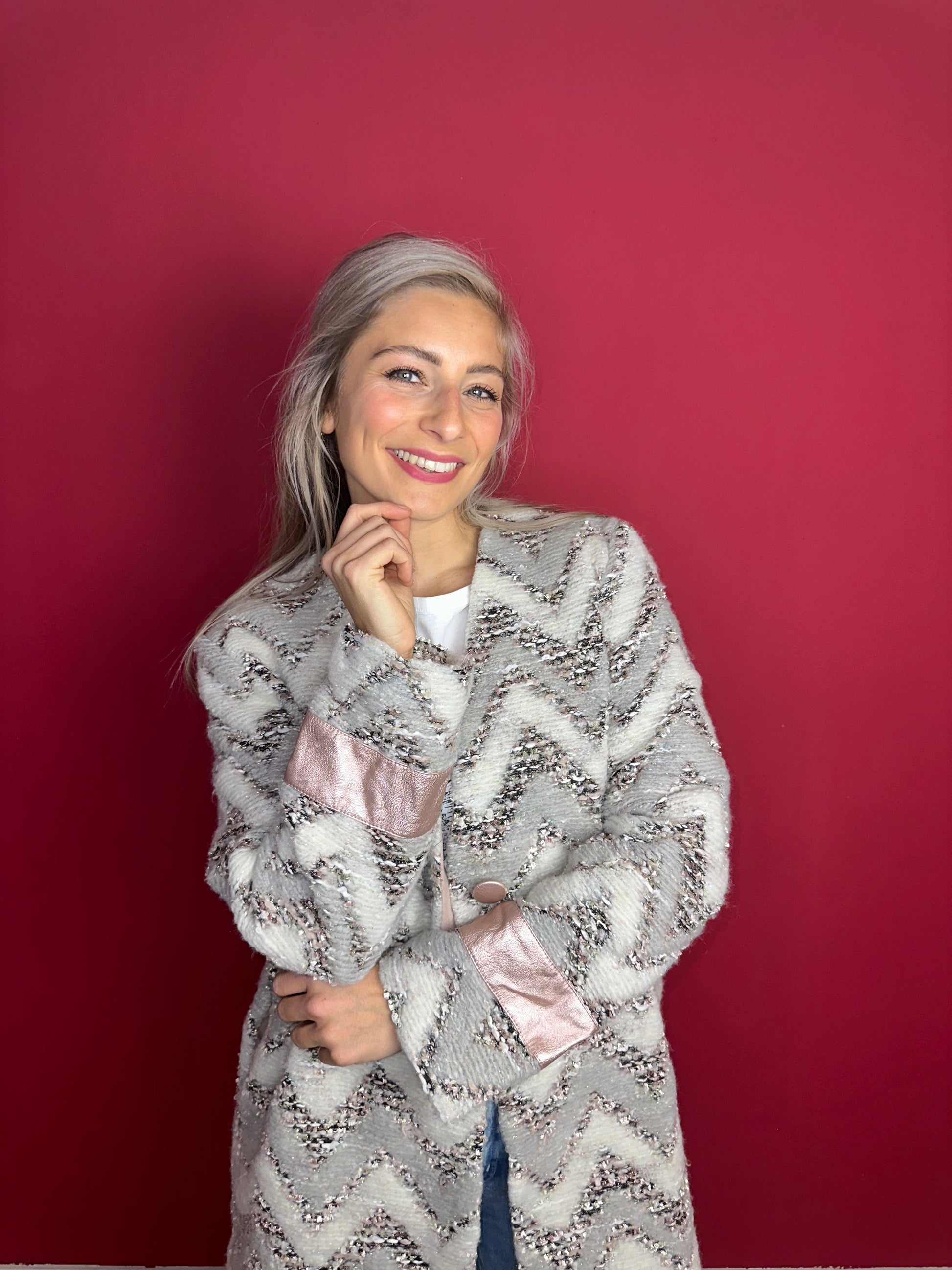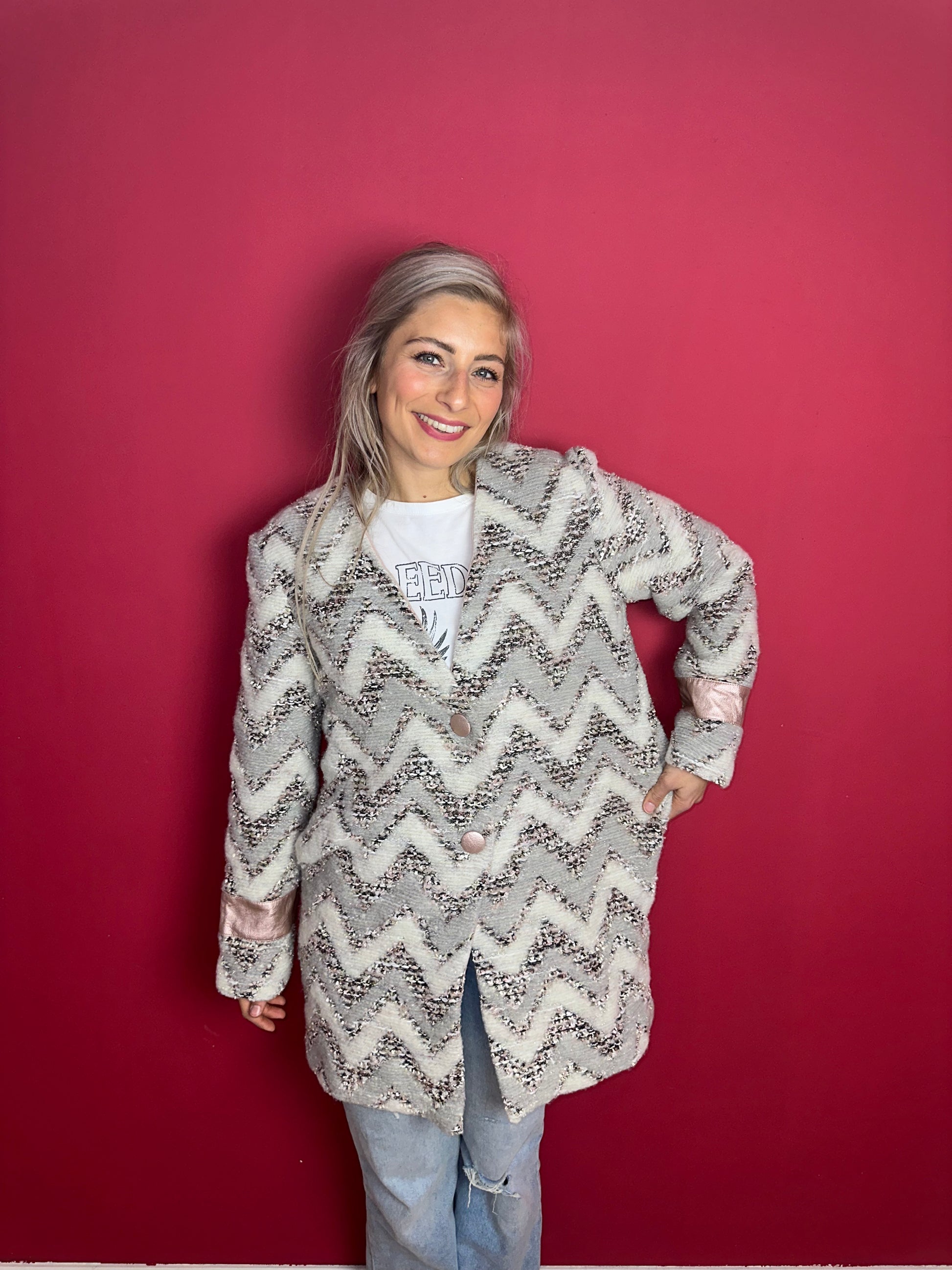 Jas Rinascimento zigzag grijs/lichtroze - Maat XL